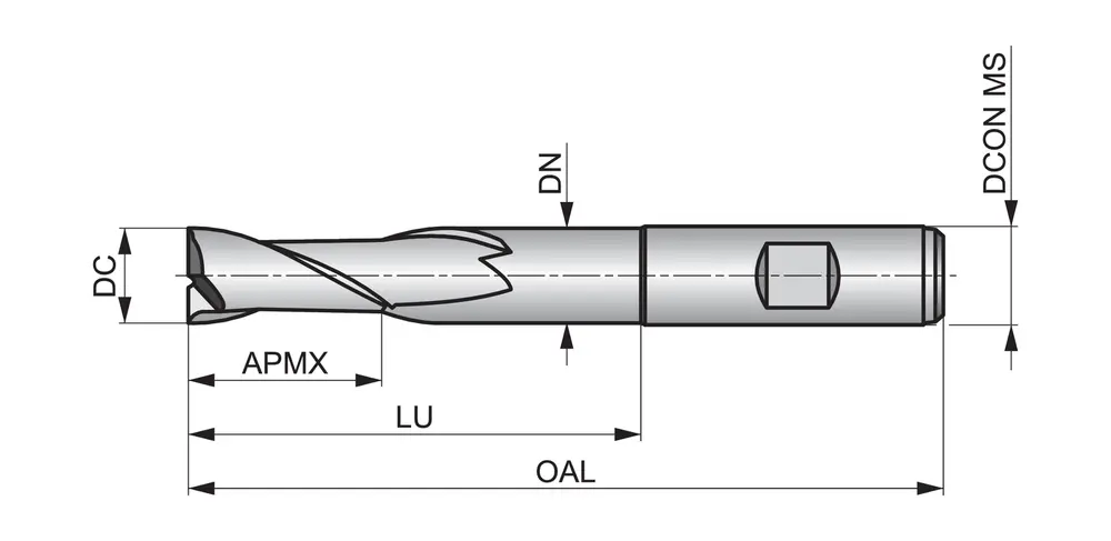 Короткое шлицевое сверло с 2 канавками, диаметром 16 мм, длиной режущей части 32 мм, общей длиной 123 мм и вылетом 74,5 мм с затылком, в соответствии со стандартом Dormer Pramet, с хвостовиком Weldon 16 мм, из быстрорежущей стали HSS-E на основе кобальта с блестящей отделкой, углом подъема спирали 30° и передним углом 12° для фрезерования пазов в легкообрабатываемой стали, меди или медных сплавах.