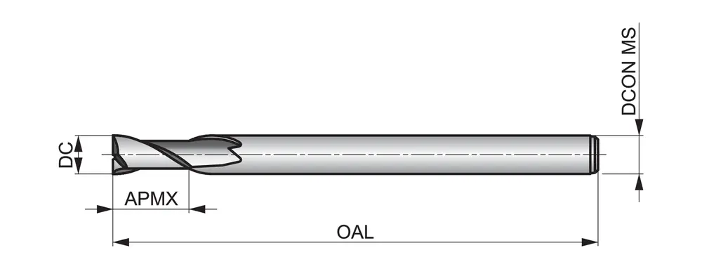 Фреза концевая короткая с 2 канавками, диаметром 6 мм, длиной режущей части 13 мм и общей длиной 180 мм, в соответствии со стандартом Dormer Pramet, с цилиндрическим хвостовиком 6 мм, из быстрорежущей стали HSS-E на основе кобальта с блестящей отделкой, углом наклона спирали 30° и передним углом 12° для фрезерования уступов и пазов в легкообрабатываемой стали, меди или медных сплавах.