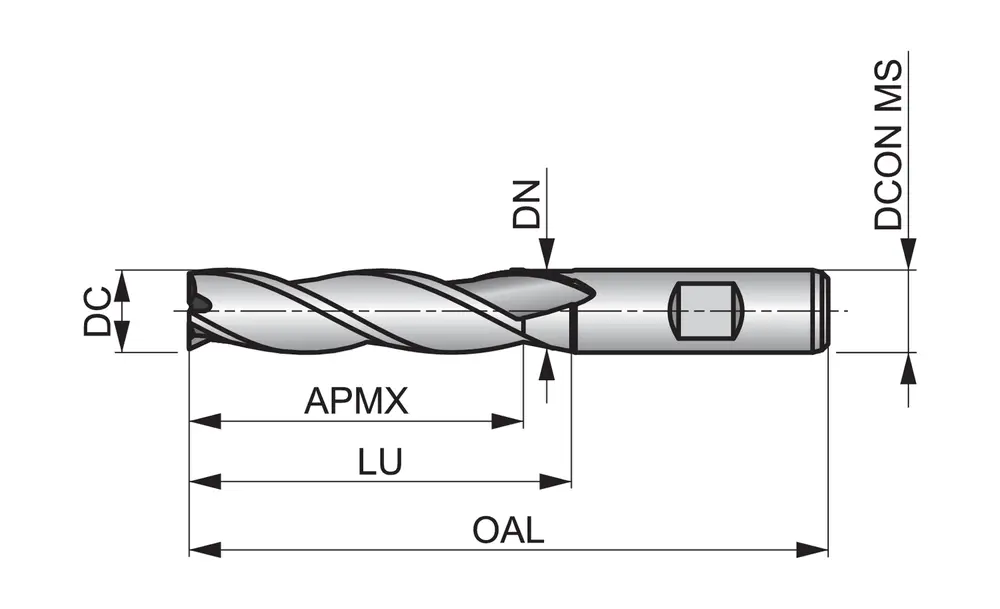 Длинная серия концевых фрез с 3 канавками, диаметром 11 мм, длиной режущей части 45 мм и общей длиной 102 мм, в соответствии со стандартом DIN 844 L, с хвостовиком Weldon 12 мм, из быстрорежущей стали HSS-E на основе кобальта с блестящей отделкой, углом наклона спирали 30° и передним углом 12° для фрезерования уступов и пазов в легкообрабатываемой стали, меди или медных сплавах.