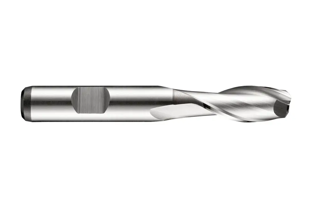 Короткое шлицевое сверло с 2 канавками, диаметром 9,5 мм, длиной режущей части 19 мм и общей длиной 69 мм, в соответствии со стандартом DIN 844 K, с хвостовиком Weldon 10 мм, из порошковой металлургической стали HSS-E с блестящей отделкой, углом наклона спирали 30° и передним углом 12° для фрезерования уступов, фрезерования пазов и обработки под углом в стали и литой стали, а также меди или медных сплавах.