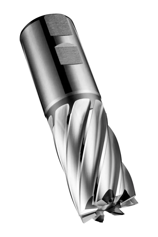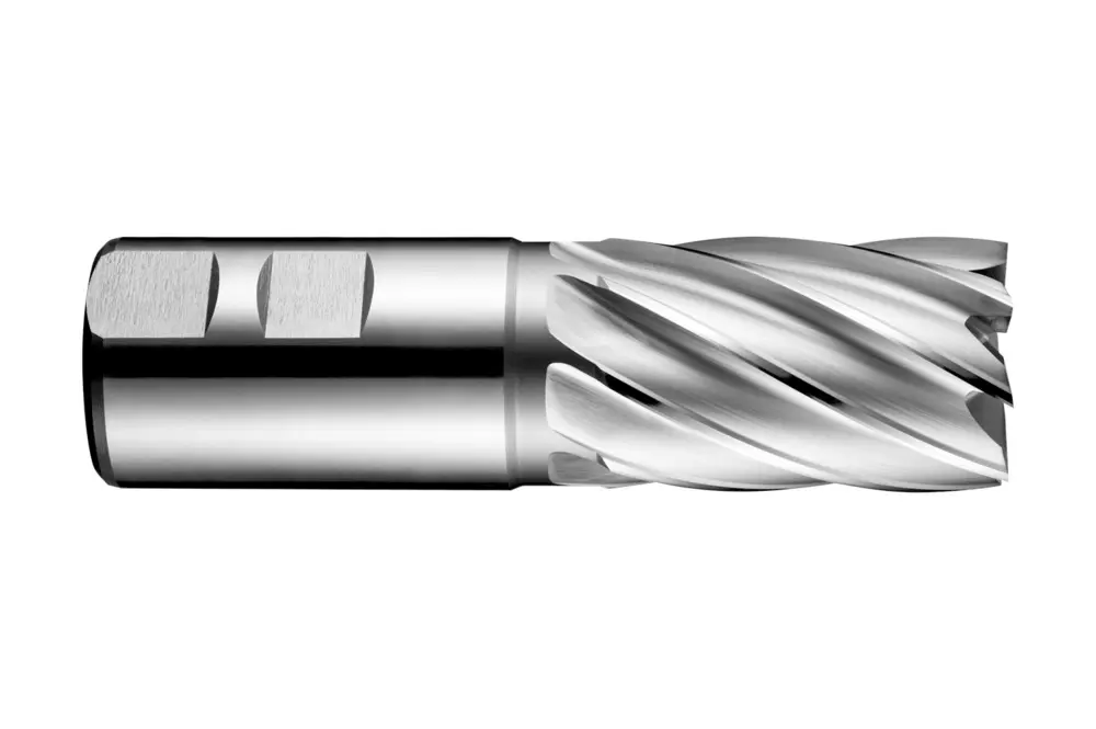 Короткая концевая фреза с 6 канавками, диаметром 40 мм, длиной резания 63 мм, общей длиной 155 мм и вылетом 84,5 мм с зачисткой шейки, соответствует стандарту DIN 844 K, с хвостовиком Weldon 40 мм, изготовлена из быстрорежущей стали HSS-E с порошковой металлургией и полированной поверхностью, угол наклона спирали 30° и угол заточки 12°, предназначена для фрезерования плеч, пазов и обработки наклонных поверхностей в легкообрабатываемых станках, а также для обработки обычной углеродистой стали, меди или медных сплавов.