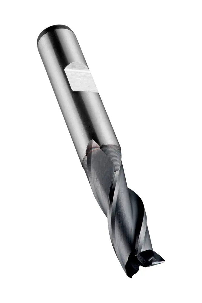 Короткое шлицевое сверло с 3 канавками, диаметром 8 мм, длиной режущей части 19 мм и общей длиной 69 мм, в соответствии со стандартом DIN 844 K с хвостовиком Weldon 10 мм, порошковая металлургическая быстрорежущая сталь HSS-E с покрытием Alcrona, углом наклона спирали 30° и передним углом 12° для фрезерования уступов, фрезерования пазов и обработки под углом в стали и стальном литье, чугуне, меди или медных сплавах, а также титане или титановых сплавах