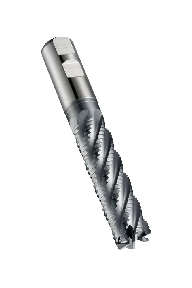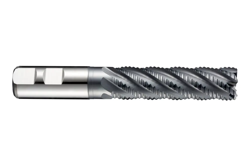 Длинная серия черновых концевых фрез с асимметричным крупным шагом профиля NRA и 6 канавками, диаметром 25 мм с длиной режущей части 90 мм, общей длиной 166 мм и вылетом 109,5 мм с затылком, в соответствии со стандартом DIN 844 L с хвостовиком Weldon 25 мм, из порошковой металлургической быстрорежущей стали HSS-E с покрытием Alcrona, углом подъема спирали 35° и передним углом 12° для фрезерования уступов и пазов в обычной углеродистой, легированной и инструментальной стали, нержавеющей стали, чугуне, меди или медных сплавах, а также жаропрочных сплавах.