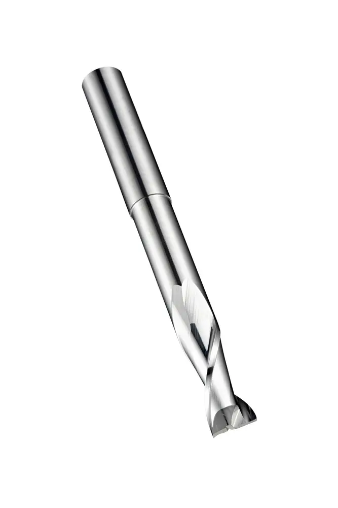 Короткая серия концевых фрез с 2 канавками, диаметром 4 мм, длиной режущей части 12 мм, общей длиной 50 мм, вылетом 20 мм с затылком и радиусом скругления 0,1 мм, в соответствии со стандартом Dormer Pramet, с гладким хвостовиком 4 мм, цельный твердосплавный с полированной отделкой, углом спирали 30° и передним углом 20° для фрезерования уступов, фрезерования пазов, обработки наклонных поверхностей и винтового фрезерования в цветных металлах.