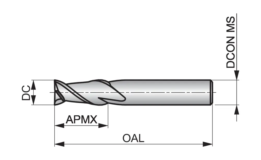 Фреза концевая короткая с 2 канавками, диаметром 5 мм, длиной режущей части 15 мм и общей длиной 50 мм, в соответствии со стандартом Dormer Pramet, с цилиндрическим хвостовиком 6 мм, цельная твердосплавная с покрытием AlCrN, углом наклона спирали 40° и передним углом 10° для фрезерования пазов в стали и стальном литье, ферритной, мартенситной и аустенитной нержавеющей стали, чугуне и жаропрочных сплавах.