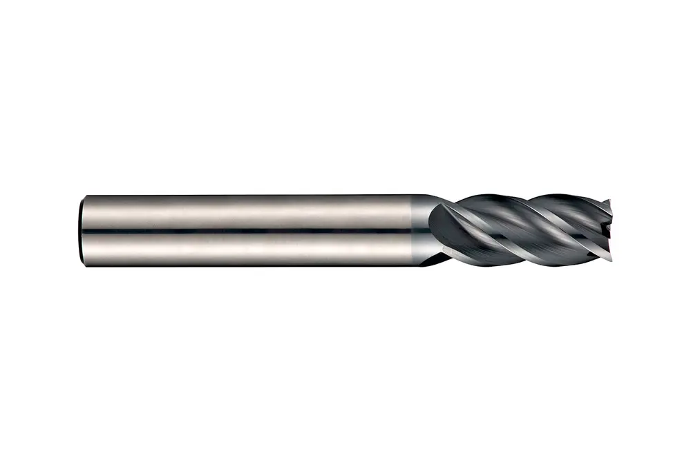 Короткая концевая фреза с 4 канавками, диаметром 12 мм, длиной резания 26 мм и общей длиной 83 мм, по стандарту Dormer Pramet, с гладким хвостовиком 12 мм, из твердого сплава с покрытием AlCrN, спиралью 40° с дифференциальным шагом и углом заточки 10°, предназначена для фрезерования и врезания в сталь и литую сталь, ферритные, мартенситные и аустенитные нержавеющие стали, чугун и высокотемпературные сплавы.