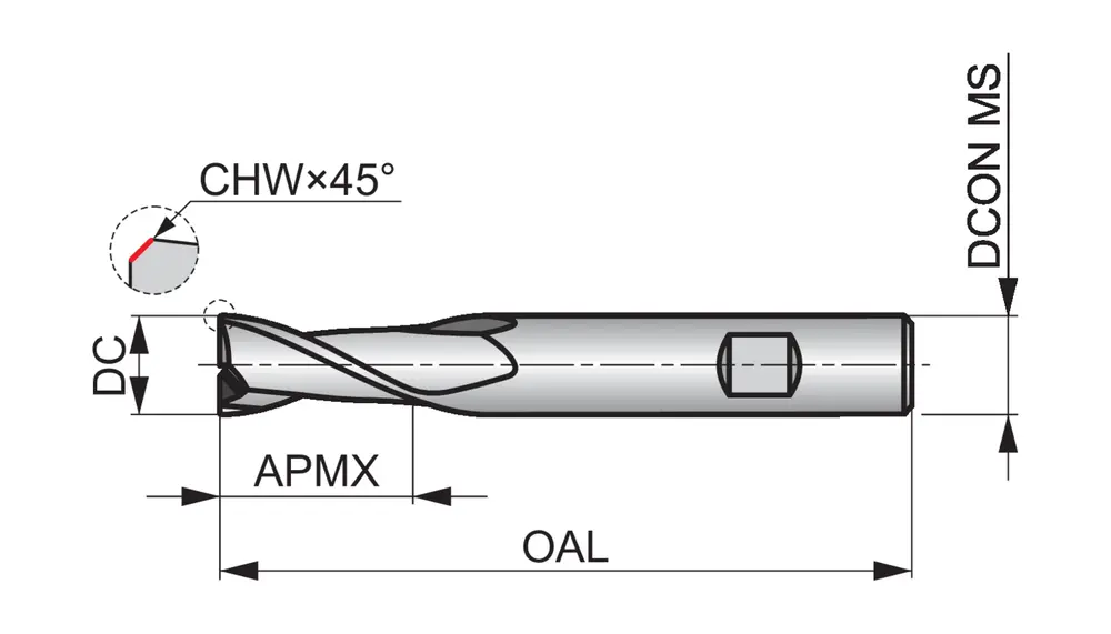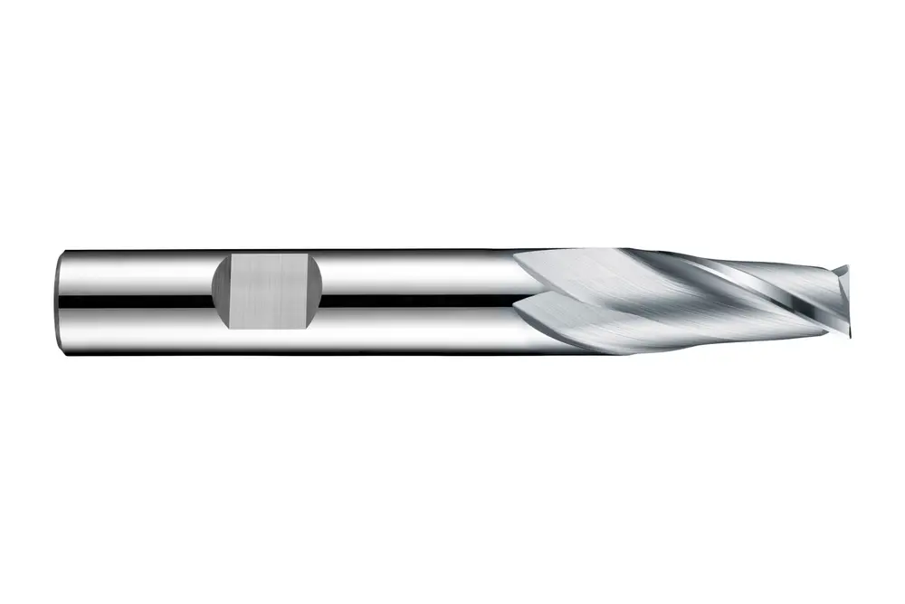 Короткое шлицевое сверло с 2 канавками, диаметром 2 мм, длиной режущей части 6 мм и общей длиной 57 мм, в соответствии со стандартом DIN 6527 L с хвостовиком Weldon 6 мм, цельное твердосплавное с покрытием AlCrN, углом наклона спирали 28° и передним углом 9° для фрезерования пазов и обработки под углом в стали и литой стали, нержавеющей стали, чугуне, кованых деталях, литом алюминии и меди или медных сплавах, а также жаропрочных сплавах.