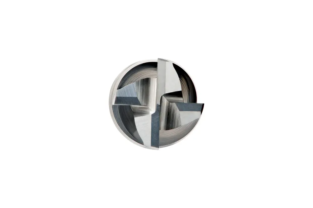 Короткая концевая фреза с 4 канавками, диаметром 8 мм, длиной резания 19 мм, общей длиной 63 мм и скошенными под углом 45° кромками толщиной 0,13 мм, в соответствии со стандартом DIN 6527 L, с гладким хвостовиком 8 мм, из твердого сплава с покрытием AlCrN, углом спирали 34° и углом заточки 9°, предназначена для фрезерования и врезания в сталь и литую сталь, ферритную и мартенситную нержавеющую сталь, чугун и медь или медные сплавы.