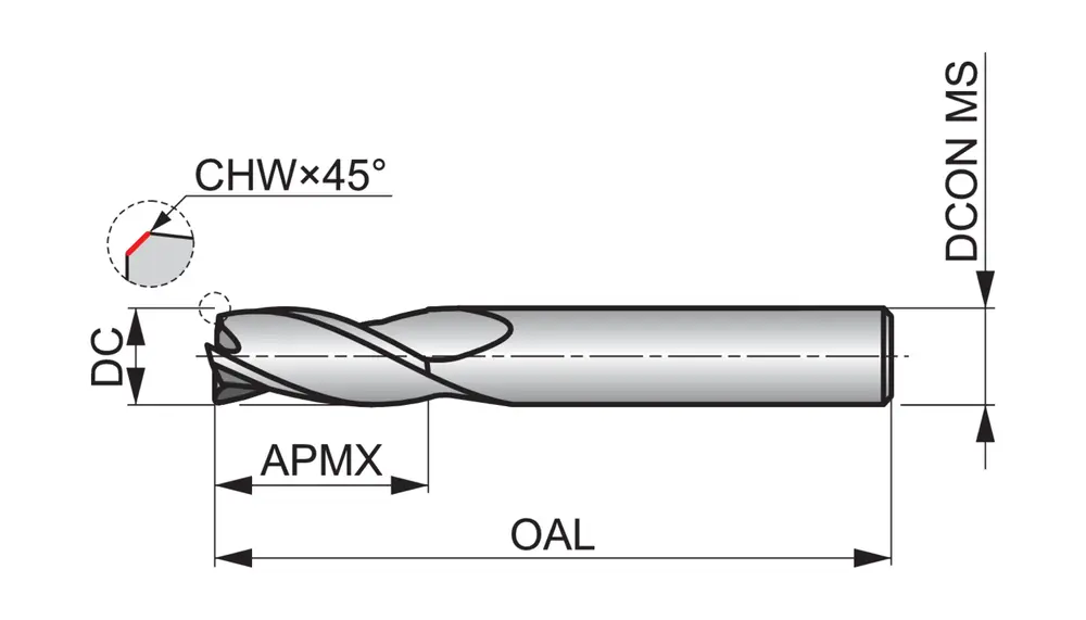 Концевая фреза стандартной длины с 3 канавками, диаметром 10 мм, длиной режущей части 22 мм, общей длиной 72 мм и скошенными под углом 45° 0,2 мм кромками, в соответствии со стандартом Dormer Pramet, с гладким хвостовиком 10 мм, цельный твердосплавный с блестящей отделкой, углом подъема спирали 30° и передним углом 12° для фрезерования уступов и пазов при автоматической обработке на станке, из обычной углеродистой и легированной стали, ковкого, пластичного и вермикулярного чугуна, а также меди или медных сплавов.