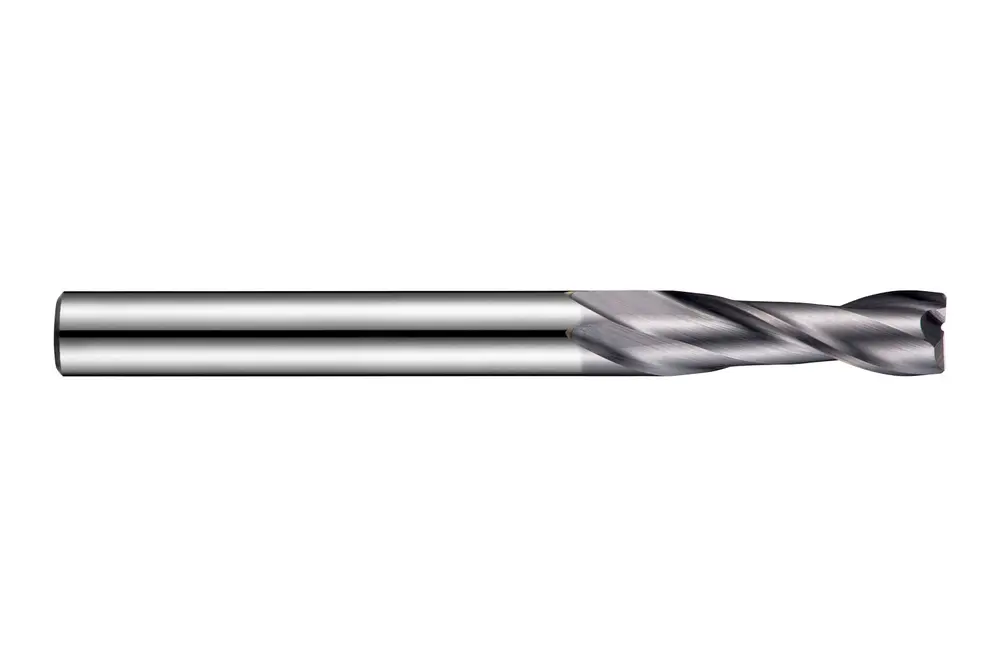 Концевая фреза стандартной длины с 2 канавками, диаметром 2 мм, длиной режущей части 6 мм, общей длиной 38 мм и скошенными под углом 45° 0,08 мм угловыми кромками, в соответствии со стандартом Dormer Pramet, с хвостовиком Weldon 3 мм, цельнотвердосплавная с покрытием TiAlN, углом подъема спирали 30° и передним углом 12° для фрезерования пазов в стали и стальном литье, чугуне и алюминиевом литье, а также меди или медных сплавах.