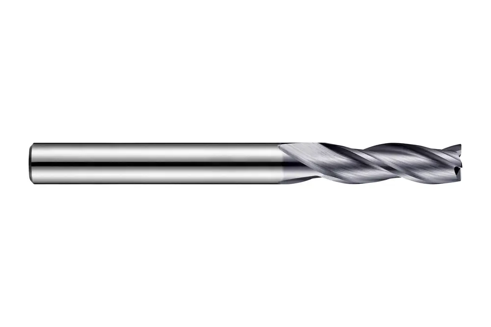 Концевая фреза стандартной длины с 3 канавками, диаметром 3 мм, длиной режущей части 12 мм, общей длиной 38 мм и скошенными под углом 45° 0,08 мм угловыми кромками, в соответствии со стандартом Dormer Pramet, с хвостовиком Weldon 3 мм, цельнотвердосплавная с покрытием TiAlN, углом подъема спирали 30° и передним углом 12° для фрезерования уступов и пазов в стали и стальном литье, чугуне и алюминиевом литье, а также меди или медных сплавах.