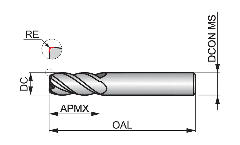 Короткая серия концевых фрез с закругленными углами, 4 канавки, диаметр 10 мм, длина резания 22 мм, общая длина 70 мм и закругление углов 1,5 мм, по стандарту Dormer Pramet, с гладким хвостовиком 10 мм, из твердого сплава с покрытием TiSiN, спиральным углом 40° и углом заточки -6°, предназначена для фрезерования плеч, врезания, прогрессивного врезания, наклонного и спирального фрезерования закаленных материалов.