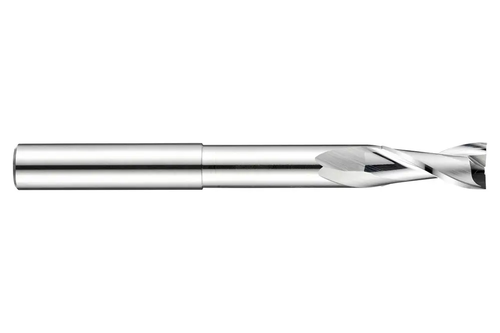 Короткая серия концевых фрез с 2 канавками, диаметром 6 мм, длиной режущей части 16 мм, общей длиной 80 мм, вылетом 40 мм с затылком и радиусом скругления углов 0,1 мм, в соответствии со стандартом Dormer Pramet, с гладким хвостовиком 6 мм, цельный твердосплавный с полированной отделкой, углом наклона 30° и передним углом 20° для фрезерования уступов, фрезерования пазов, обработки наклонных поверхностей и винтового фрезерования в цветных металлах.