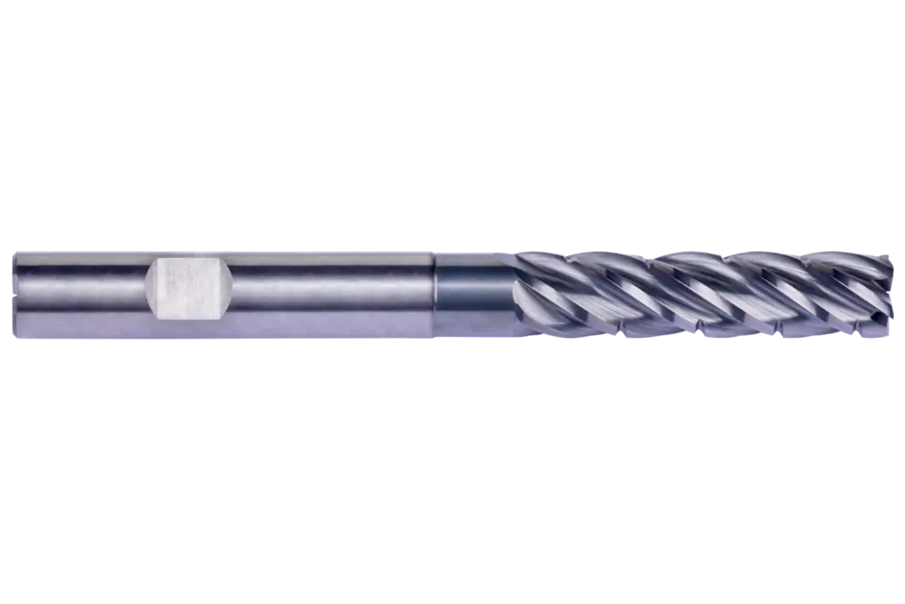 Длинная серия трохоидальных концевых фрез с разделителем стружки FS и 5 канавками, диаметр 10 мм, длина режущей части 42 мм, общая длина 100 мм, вылет 52 мм с закруглением шейки и радиусом скругления углов 0,2 мм, в соответствии со стандартом Dormer Pramet, с хвостовиком Weldon 10 мм, из цельного твердосплава с покрытием AlCrN, неравномерной спиралью и углом заточки 10°, для фрезерования плеч, наклонных фрез, спирального фрезерования и трохоидального фрезерования стали и литой стали, нержавеющей стали, чугуна или высокотемпературных сплавов.