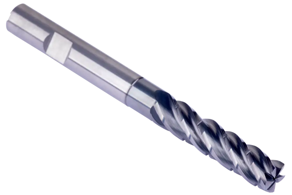 Длинная серия трохоидальных концевых фрез с разделителем стружки FS и 5 канавками, диаметр 12 мм, длина режущей части 42 мм, общая длина 100 мм, вылет 54 мм с закруглением шейки и радиусом скругления углов 0,2 мм, в соответствии со стандартом Dormer Pramet, с хвостовиком Weldon 12 мм, из цельного твердосплава с покрытием AlCrN, неравномерной спиралью и углом заточки 10°, для фрезерования плеч, наклонных фрез, спирального фрезерования и трохоидального фрезерования стали и литой стали, нержавеющей стали, чугуна или высокотемпературных сплавов.