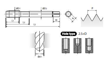 Метчик для глухих отверстий HSS-PM M2.3X0.4-6H-45.0L