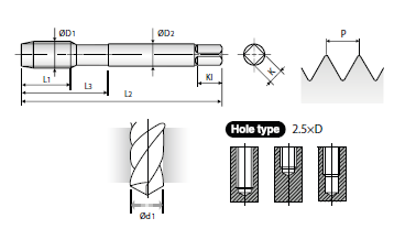 Метчик для сквозных отверстий HSS-E #5-40UNC-2B-56.0L