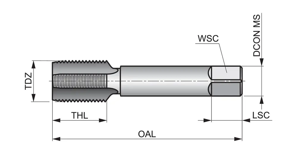 Метчик ручной с прямой канавкой №1 с конусом 6-8xP для трубной резьбы G 7/8" по британскому стандарту с шагом 14 нитей на дюйм и классом точности "нормальный", размеры соответствуют стандарту ISO 2284, хвостовик 22,4 мм, квадратный привод 18,0 мм, из быстрорежущей стали с блестящей отделкой для сквозных или глухих отверстий диаметром 1,5xD в станках с ЧПУ и обычной углеродистой стали.
