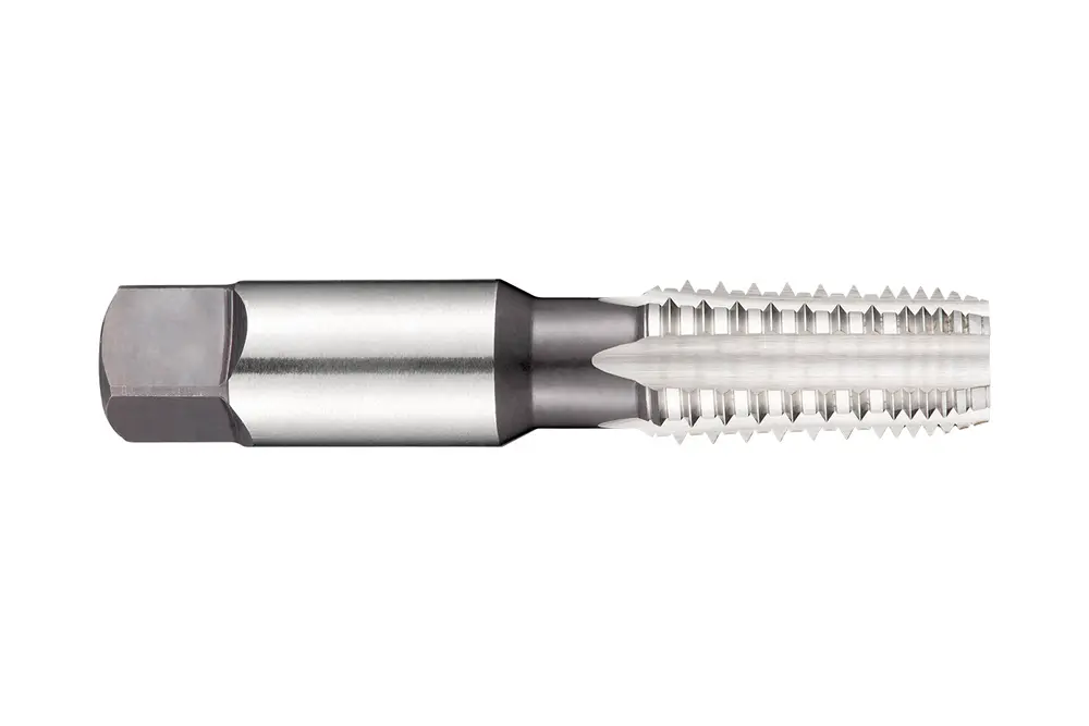 Метчик с прямой канавкой и фаской формы C, с шлицем 2-3xP, для национальной трубной конической резьбы NPT 3/4" с шагом 14 витков на дюйм и нормальным классом точности, размеры соответствуют стандарту ANSI B94.9, с хвостовиком 23,0 мм и квадратным приводом 17,2 мм, из быстрорежущей стали с блестящей отделкой для сквозных или глухих отверстий диаметром 1,5xD в легированной стали.