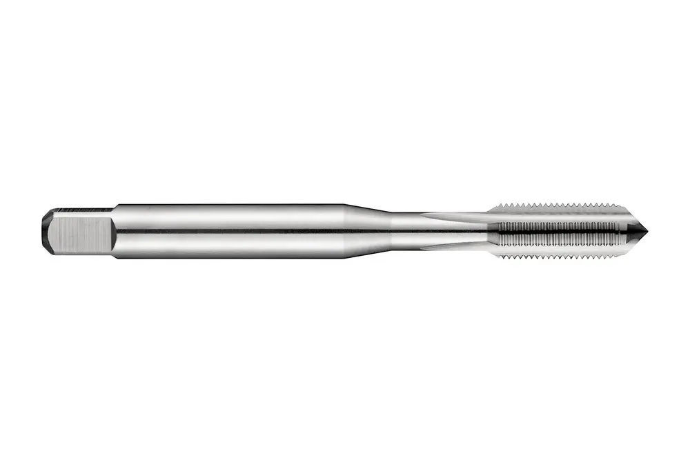 Метчик ручной с прямой канавкой №3 с шлицем 2-3xP для единой национальной резьбы UN 1/2", шаг резьбы 28 TPI и класс точности 2B, размеры по стандарту ISO 529, хвостовик 9,0 мм, приводной квадрат 7,1 мм, из быстрорежущей стали с блестящей поверхностью для нарезания резьбы 1,5xD в сквозных или глухих отверстиях в углеродистой стали, меди или медных сплавах.