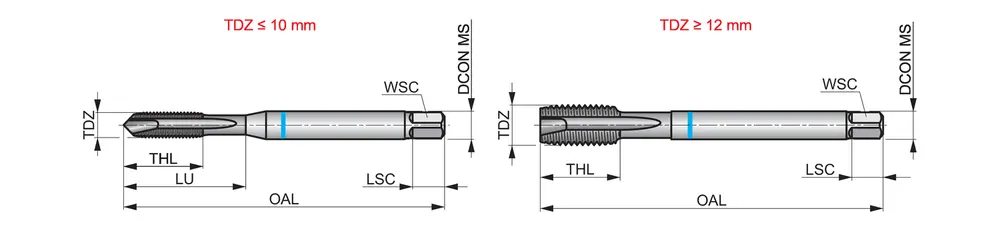 Метчик со спиральной головкой Blue Shark с фаской формы B, вторым заходом 3,5-5xP, для метрической резьбы ISO M12 с шагом 1,75 мм и классом точности 6H, размеры по стандарту DIN 376, с хвостовиком 9,0 мм и квадратным приводом 7,0 мм, изготавливается из порошковой стали HSS-E с обработанной паром поверхностью для нарезания сквозной резьбы 2,5xD в нержавеющей стали.