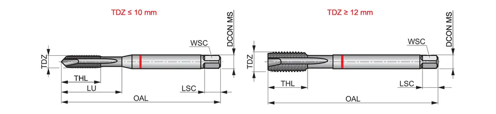 Метчик Red Shark со спиральной канавкой, фаской формы B, вторым заходом 3,5-5xP, для метрической резьбы ISO M12 с шагом 1,75 мм и классом точности 6H, размеры по стандарту DIN 376, с хвостовиком 9,0 мм и квадратным приводом 7,0 мм, изготавливается методом порошковой металлургии из быстрорежущей стали HSS-E с блестящей поверхностью для нарезания сквозной резьбы 2,5xD в углеродистой, легированной и инструментальной стали.