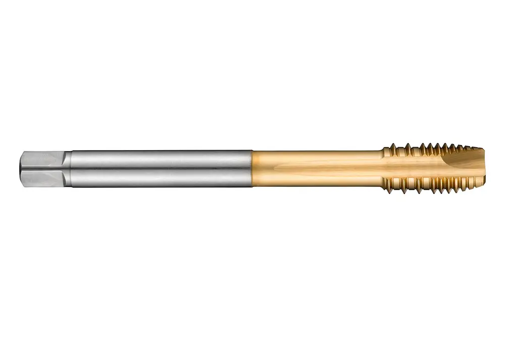 Метчик со спиральной подточкой и фаской формы B с заходной частью 3,5-5xP для метрической резьбы ISO M14 с шагом 2,00 мм и классом точности 6H, размеры по стандарту DIN 376 с хвостовиком 11,0 мм и квадратным приводом 9,0 мм, из порошковой стали HSS-E с покрытием TiN для нарезания сквозной резьбы 3xD в автоматически обрабатываемых деталях из углеродистой и легированной стали, а также деформируемых сталей, меди и медных сплавов.