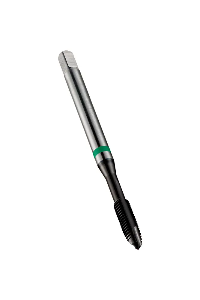 Метчик спиральный Green Shark с фаской формы B, со вторым заходом 3,5-5xP, для метрической резьбы ISO M4 с шагом 0,70 мм и классом точности 6H, размеры по стандарту DIN 371, с хвостовиком 4,5 мм и приводным квадратом 3,4 мм, из порошковой металлургии HSS-E с покрытием Super-B для сквозного отверстия 2,5xD в литом алюминии