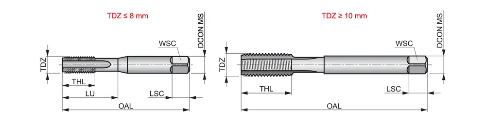 Метчик с прямой канавкой и фаской формы C, с шлицем 2-3xP, для метрической резьбы с проволочной вставкой EGM5 с шагом 0,80 мм и классом точности 6H, размеры по стандарту Dormer Pramet с хвостовиком 6,3 мм и квадратным приводом 5,0 мм, из быстрорежущей стали с блестящей отделкой для сквозных или глухих отверстий 1,5xD в автоматической и обычной углеродистой стали.