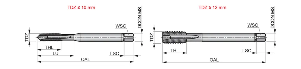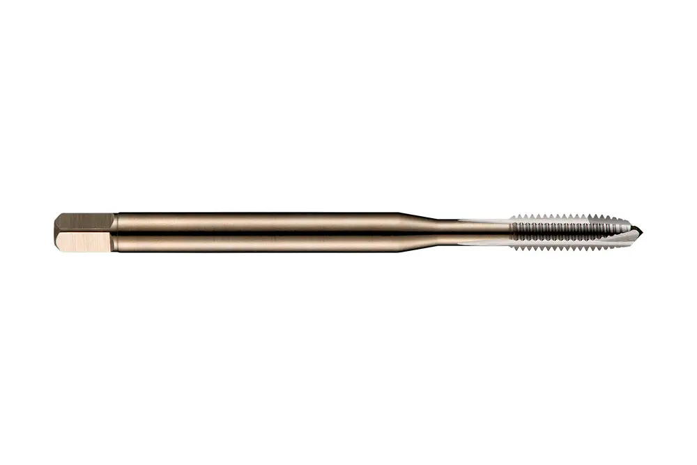Метчик со спиральной канавкой и фаской формы B, со вторым заходом 3,5-5xP, для метрической резьбы ISO M4 с шагом 0,70 мм и классом точности 6H, размеры по стандарту DIN 376, с хвостовиком 2,8 мм и квадратным приводом 2,1 мм, из порошковой металлургической стали HSS-E с блестящей отделкой для нарезания сквозной резьбы 2,5xD в углеродистой стали, обработанной на станке, и обычной стали, а также кованого или литого алюминия.