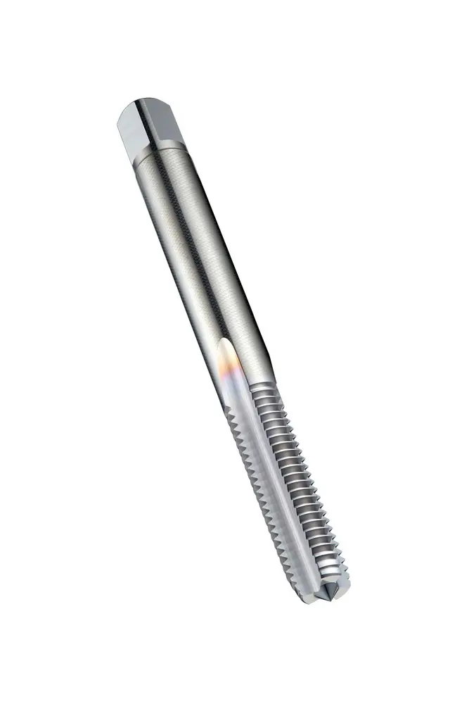 Метчик с прямой канавкой и фаской формы C, с шагом 2-3xP, для метрической резьбы ISO M5 с шагом 0,80 мм и классом точности 6H, размеры по стандарту DIN 371, с хвостовиком 6,0 мм и квадратным приводом 4,9 мм, цельный твердосплавный с покрытием TiCN для нарезания сквозной или глухой резьбы 2xD в отбеленной или закаленной стали <55HRC