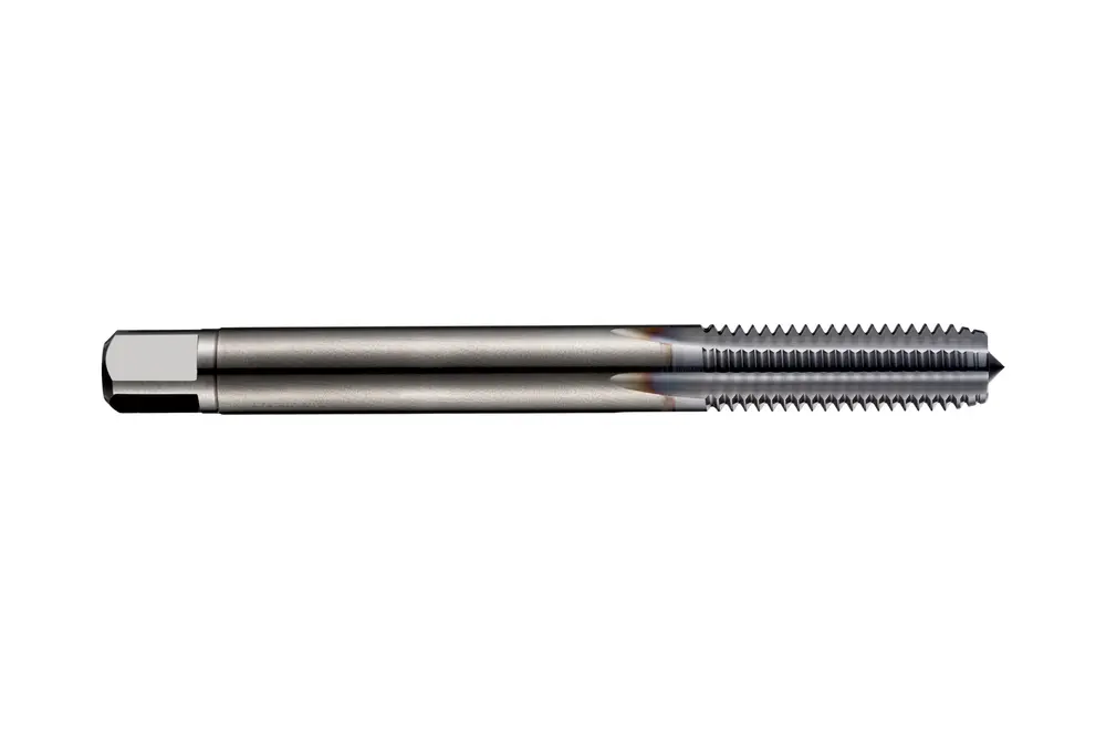 Метчик с прямой канавкой и фаской формы C, с шагом 2-3xP, для метрической резьбы ISO M8 с шагом 1,25 мм и классом точности 6HX, размеры по стандарту DIN 371, с хвостовиком 8,0 мм и квадратным приводом 6,2 мм, цельный твердосплавный с покрытием TiCN для нарезания сквозной или глухой резьбы 2xD в закаленной стали >55HRC