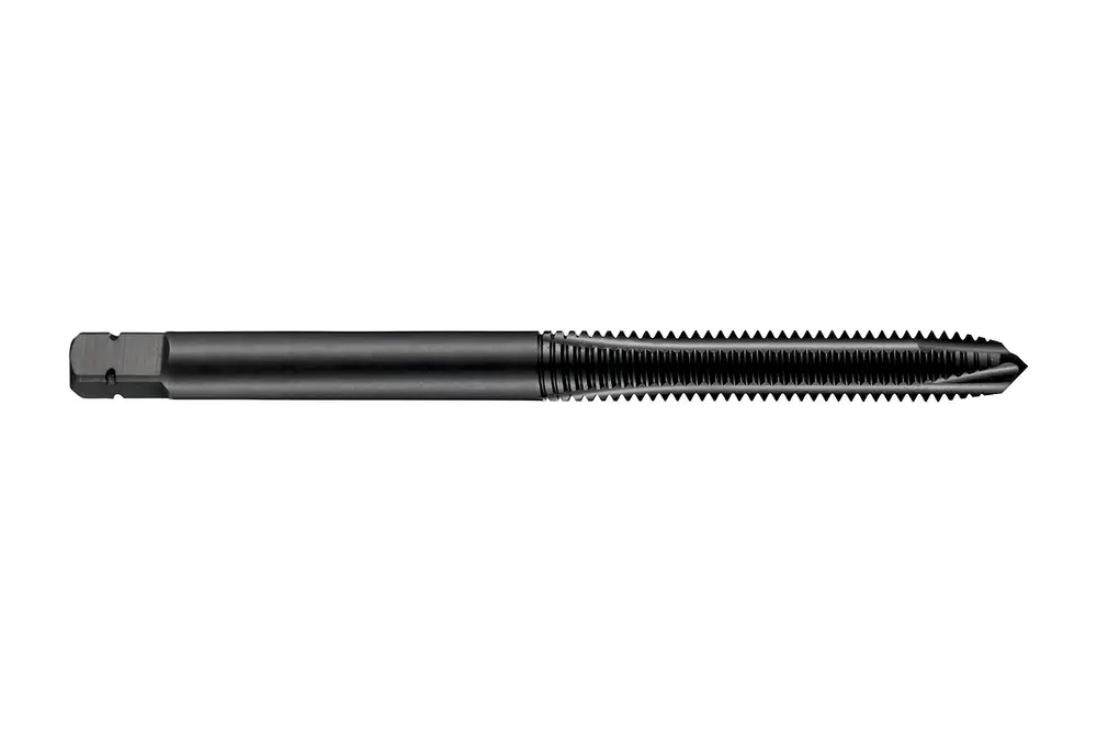 Метчик со спиральной канавкой и фаской формы B с заходной частью 3,5-5xP, для резьбы Британской ассоциации BA 8 с шагом 0,43 мм и нормальным классом посадки, размеры по стандарту ISO 529 с хвостовиком 2,8 мм и квадратным приводом 2,2 мм, из быстрорежущей стали с обработанной паром поверхностью для нарезания резьбы 2,5xD в сквозных отверстиях из обычной углеродистой и легированной стали, а также из ферритной и аустенитной нержавеющей стали.