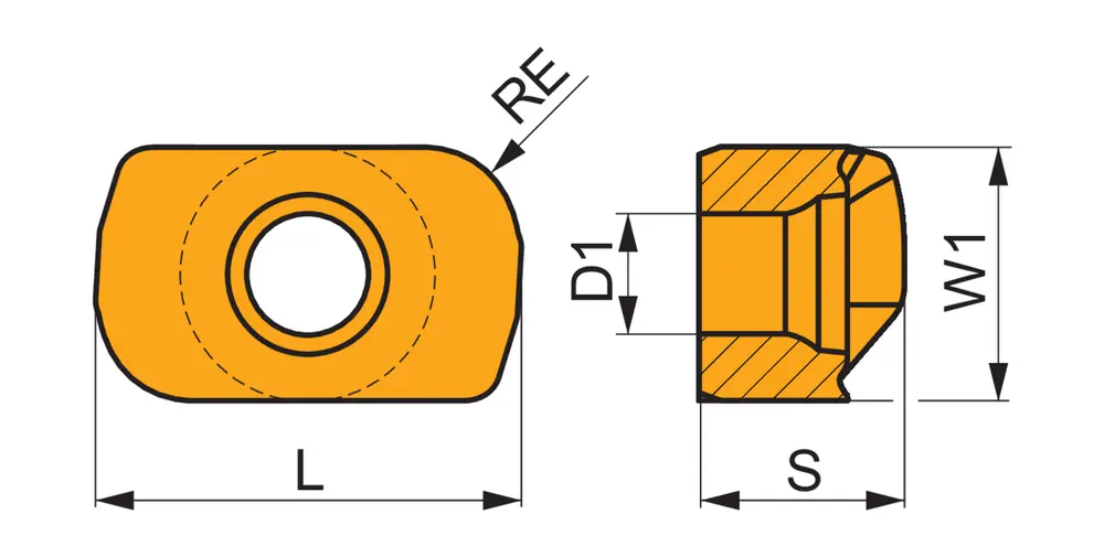 Двухсторонняя фрезерная пластина ANHX 10T3, параллелограмм 85° для максимальной глубины резания 3,0 мм, с радиусом угла 2,0 мм, точностью индексации в соответствии с классом допуска ISO-H и геометрией F со скругленными режущими кромками и фаской, мелкозернистый карбид WC-Co с покрытием PVD M8310 в диапазоне классов ISO P01 -P10 для обработки стали фрезами SBN10 с высокой подачей