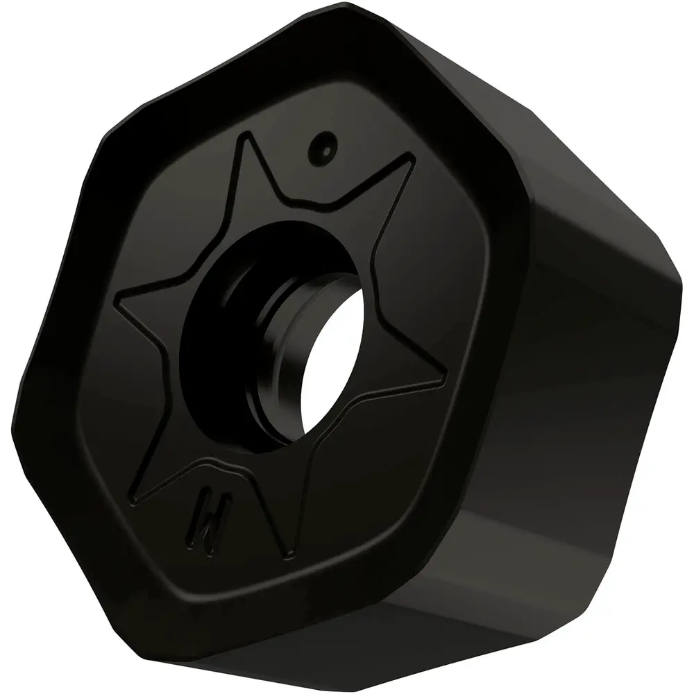 Двухсторонняя фрезерная пластина HNGX 0906, шестигранная для максимальной глубины резания 5,0 мм, с точностью индексации в соответствии с классом допуска ISO-G и геометрией M со скругленными режущими кромками и фаской, карбид WC-Co с покрытием MT-CVD M9315 в диапазонах ISO P05 -P25 и K10 -K30 для обработки стали и чугуна торцевыми фрезами SHN09C