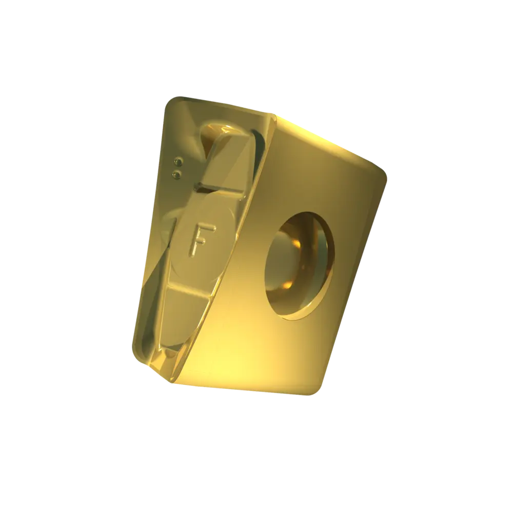 Двухсторонняя фрезерная пластина LNEX 1210, прямоугольная, для максимальной глубины резания 10,0 мм, с радиусом закругления угла 0,8 мм, точностью индексации в соответствии с классом допуска ISO E и геометрией F со скругленными режущими кромками и фаской, мелкозернистый карбид WC-Co с покрытием PVD M8340 в диапазоне ISO P25 - P50 для обработки стали фрезами с уступами SLN12X