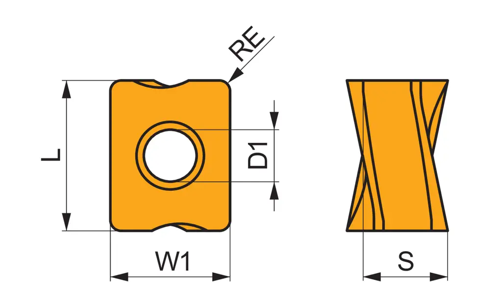 Двухсторонняя фрезерная пластина LNGX 1205, прямоугольная для максимальной глубины резания 9,0 мм, с радиусом угла 0,8 мм, точностью индексации в соответствии с классом допуска ISO-G и геометрией M со скругленными режущими кромками, карбид WC-Co с покрытием MT-CVD M9340 в диапазоне ISO P35 -P50 для обработки стали фрезами с уступами SLN12