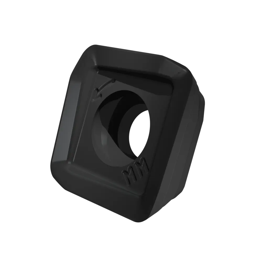 Односторонняя фрезерная пластина HFC, квадратная для максимальной глубины резания 1,9 мм, с радиусом угла 1,4 мм, точность индексации в соответствии с классом допуска ISO-H. Сплав M9325, MT-CVD, WC-Co подходит для стали и литой стали, нержавеющей стали, жаропрочных сплавов. Геометрия MM острая и подходит для обработки больших вылетов или тонкостенных и тонких заготовок. Разработана с положительным передним углом, узкой Т-образной фаской и закруглением режущей кромки для плавного фрезерования HFC.