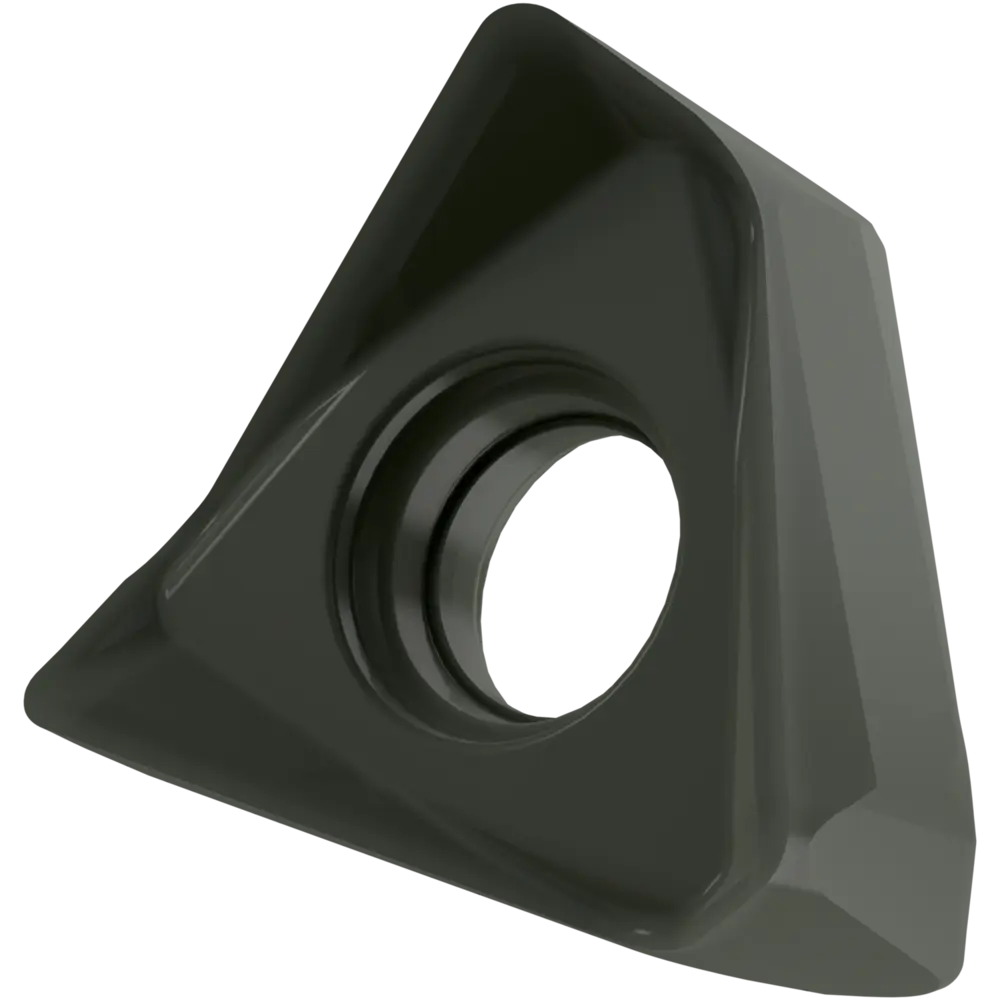 Двухсторонняя фрезерная пластина TNGX 1606, треугольная для максимальной глубины резания 10,0 мм, с радиусом угла 0,4 мм, точностью индексации в соответствии с классом допуска ISO-G и геометрией FA с острыми режущими кромками, мелкозернистый карбид WC-Co с покрытием PVD M0315 в диапазоне классов прочности ISO N05 -N25 для обработки цветных металлов торцевыми фрезами STN16.