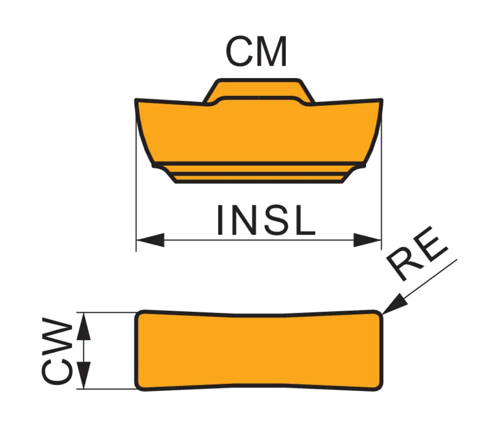 Двухсторонняя отрезная и канавочная пластина длиной 12,6 мм с шириной режущей кромки 3 мм и радиусом при вершине 0,4 мм, точность по классу допуска M и стружколом CM, сорт T8330, мелкозернистый карбид WC-Co с покрытием PVD в диапазонах ISO P25-P40 и K20-K40 для обработки стали и чугуна в сочетании с инструментами для отрезки и канавки DORMER PRAMET GF..(RL) 0313 и GG..(RL) 0313