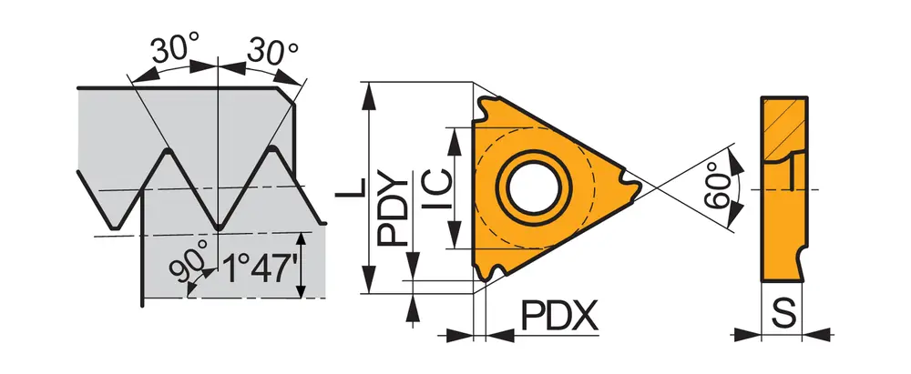 Односторонняя резьбонарезная пластина, треугольная с диаметром вписанной окружности 6,35 мм, для правостороннего нарезания внутренней резьбы NPT с мелкозернистым карбидом WC-Co с покрытием PVD 18TPI T8030 в диапазонах ISO P25-P40/M20-M35 и K20-K40 для обработки стали, нержавеющей стали и чугуна.