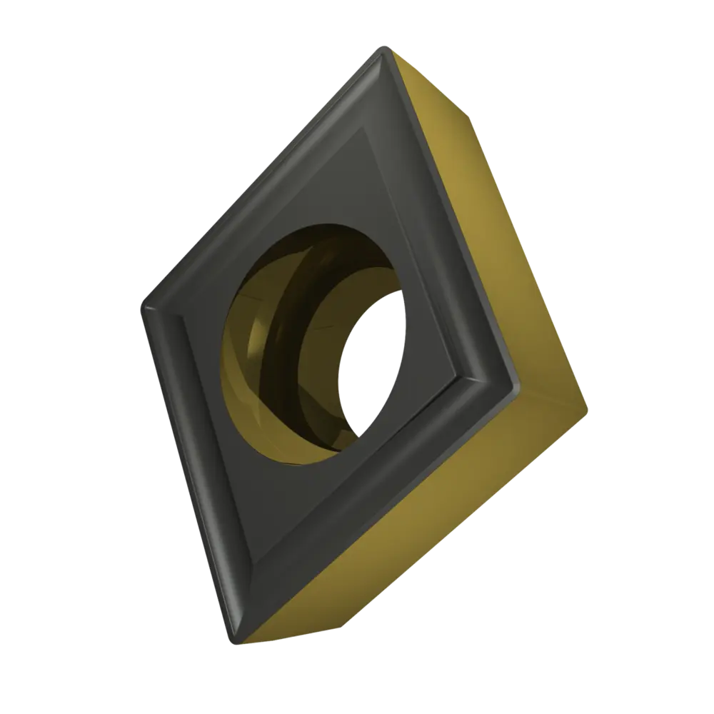 Односторонняя позитивная токарная пластина, ромбовидная 80° с зазором 7°, диаметр вписанной окружности 12,7 мм, толщина 4,76 мм, радиус вершины 0,4 мм, точность индексации в соответствии с классом допуска ISO-M, стружколом RM3 со скругленными режущими кромками, из сплава T9415, функционально-градуированного твердого сплава WC-Co с покрытием MT-CVD в диапазоне ISO P05 -P30, для чистовой и тяжелой обработки сталей
