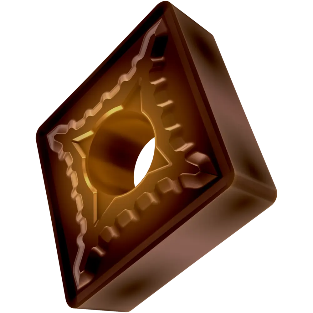Двусторонняя негативная токарная пластина, ромбовидная 80° с диаметром вписанной окружности 12,7 мм, толщиной 4,76 мм, радиусом при вершине 0,8 мм, точностью индексации в соответствии с классом допуска ISO-M, стружколомом SM со скругленными режущими кромками, из сплава T8415.