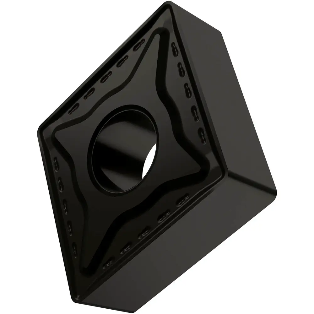 Двусторонняя негативная токарная пластина, ромбовидная 80° с диаметром вписанной окружности 12,7 мм, толщиной 4,76 мм, радиусом при вершине 1,2 мм, точностью индексации в соответствии с классом допуска ISO-M, стружколомом RM со скругленными режущими кромками, из сплава T9315, функционально-градуированного твердого сплава WC-Co с покрытием MT-CVD в диапазоне ISO P05 -P25, для средней и тяжелой обработки сталей.