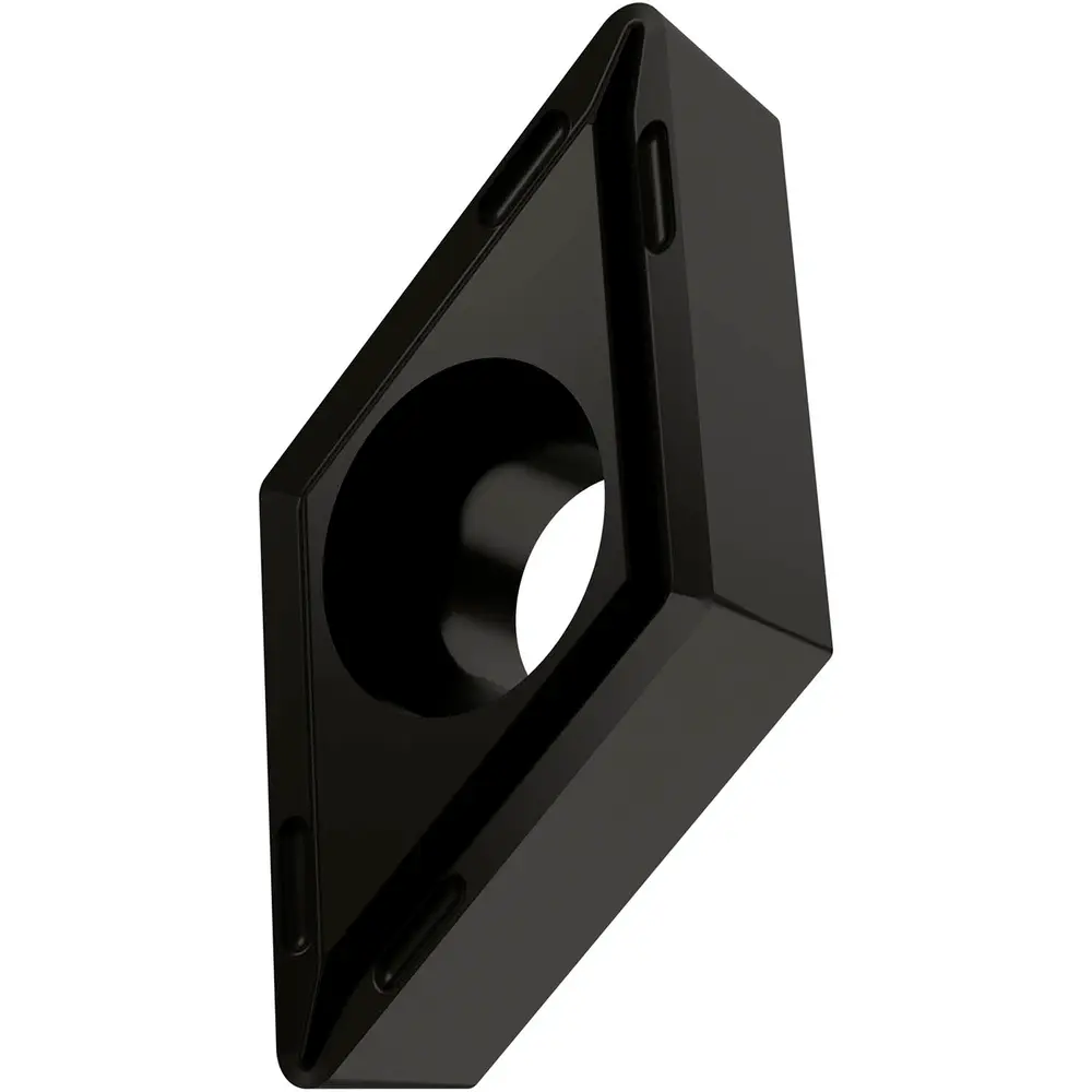 Односторонняя позитивная токарная пластина, ромбовидная 55° с зазором 7°, диаметр вписанной окружности 6,35 мм, толщина 2,38 мм, радиус вершины 0,4 мм, точность индексации в соответствии с классом допуска ISO-M, стружколом FF2 со скругленными режущими кромками, из сплава T9325, функционально-градуированного твердого сплава WC-Co с покрытием MT-CVD в диапазоне ISO P15 -P35, для чистовой и получистовой обработки сталей.