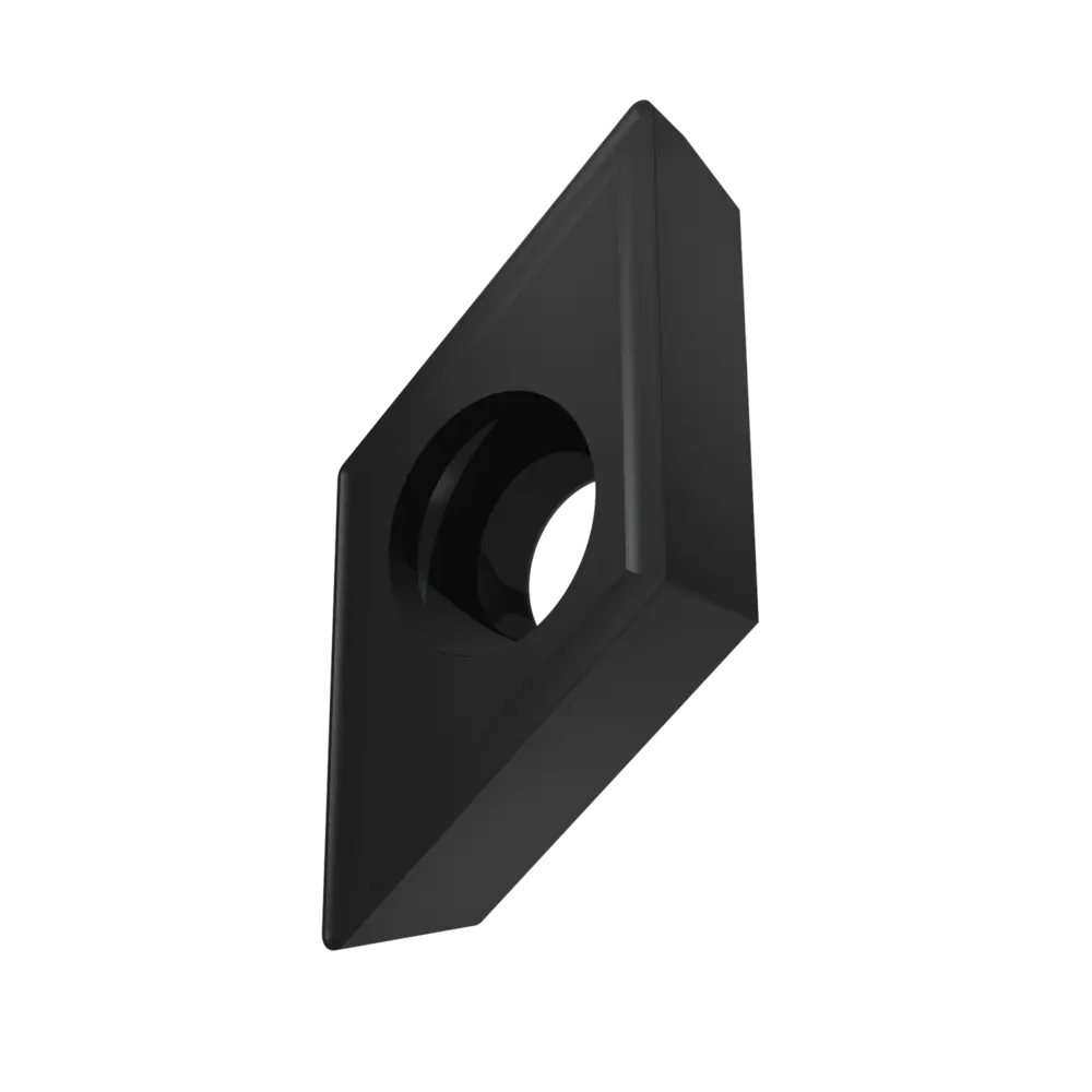 Односторонняя позитивная токарная пластина, ромб 55° с зазором 7°, диаметр вписанной окружности 9,525 мм, толщина 3,97 мм, радиус вершины 0,4 мм, точность индексации в соответствии с классом допуска ISO-M, стружколом RF со скругленными режущими кромками, из сплава T5315, карбида WC-Co с покрытием MT-CVD в диапазоне ISO K10 -K25, для чистовой и тяжелой обработки чугуна.