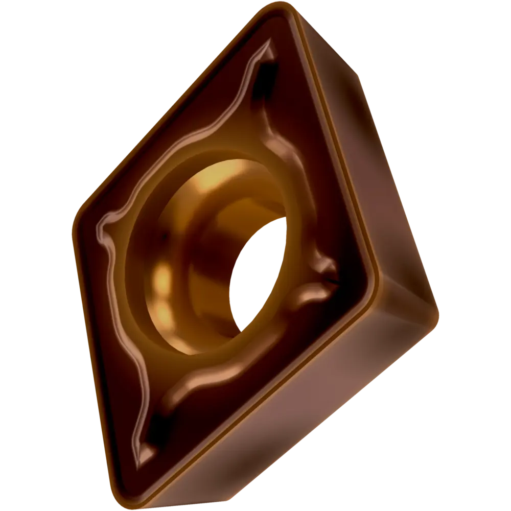Односторонняя позитивная токарная пластина, ромбовидная 75° с зазором 7°, диаметр вписанной окружности 7,94 мм, толщина 3,18 мм, радиус вершины 0,8 мм, точность индексации в соответствии с классом допуска ISO-M, стружколом FM2 со скругленными режущими кромками, из сплава T8430, мелкозернистого твердого сплава WC-Co с покрытием PVD в диапазоне ISO P20 -P40, для чистовой и средней обработки сталей.