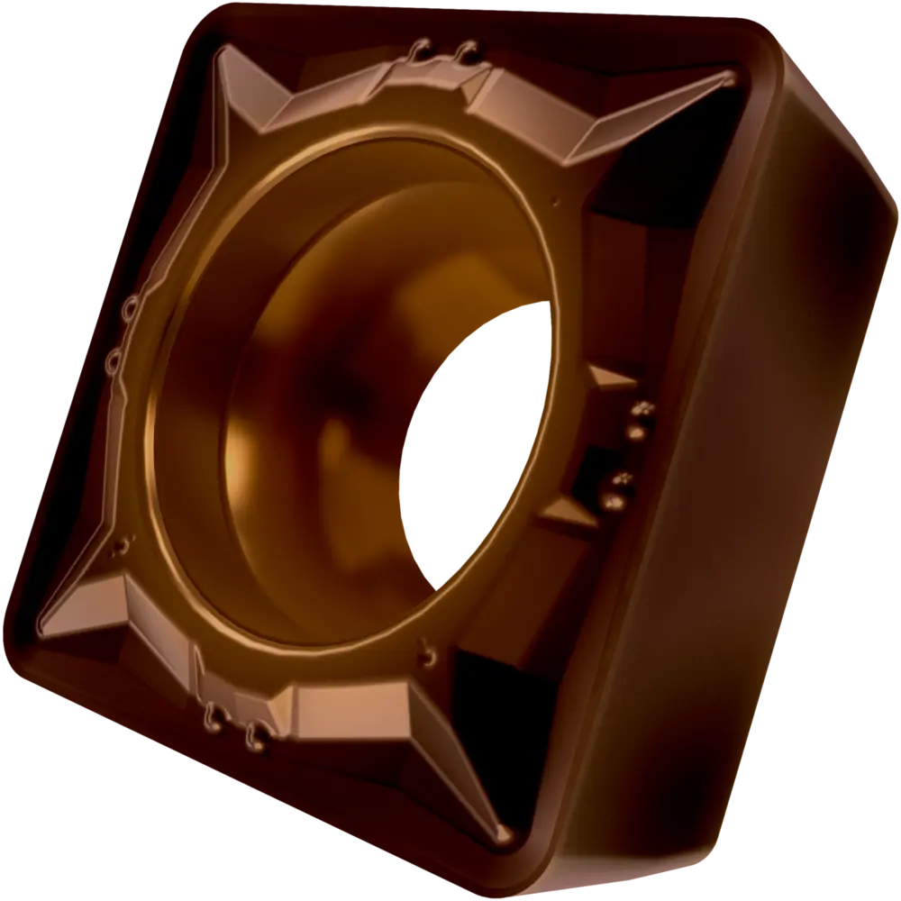 Односторонняя позитивная токарная пластина, квадратная с зазором 7°, диаметр вписанной окружности 12,7 мм, толщина 4,76 мм, радиус при вершине 0,4 мм, точность индексации в соответствии с классом допуска ISO-M, стружколом FM со скругленными режущими кромками, из сплава T8415.