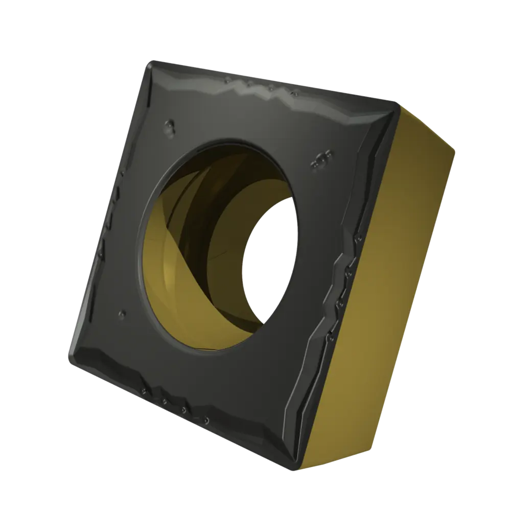 Односторонняя позитивная токарная пластина, квадратная с зазором 7°, диаметр вписанной окружности 12,7 мм, толщина 4,76 мм, радиус вершины 0,4 мм, точность индексации в соответствии с классом допуска ISO M, стружколом FM со скругленными режущими кромками, из сплава T9415, функционально-градуированного твердого сплава WC-Co с покрытием MT-CVD в диапазоне ISO P05 -P30, для чистовой и получистовой обработки сталей.