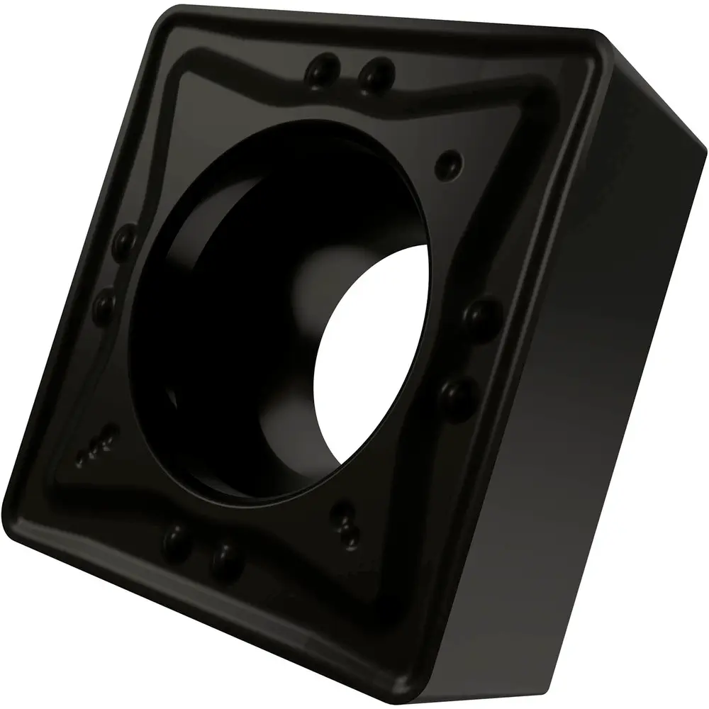 Односторонняя позитивная токарная пластина, квадратная с зазором 7°, диаметр вписанной окружности 12,7 мм, толщина 4,76 мм, радиус вершины 0,8 мм, точность индексации в соответствии с классом допуска ISO-M, стружколом RM со скругленными режущими кромками, из сплава T5305, карбида WC-Co с покрытием MT-CVD в диапазоне ISO K01 -K15, для чистовой и тяжелой обработки чугуна.